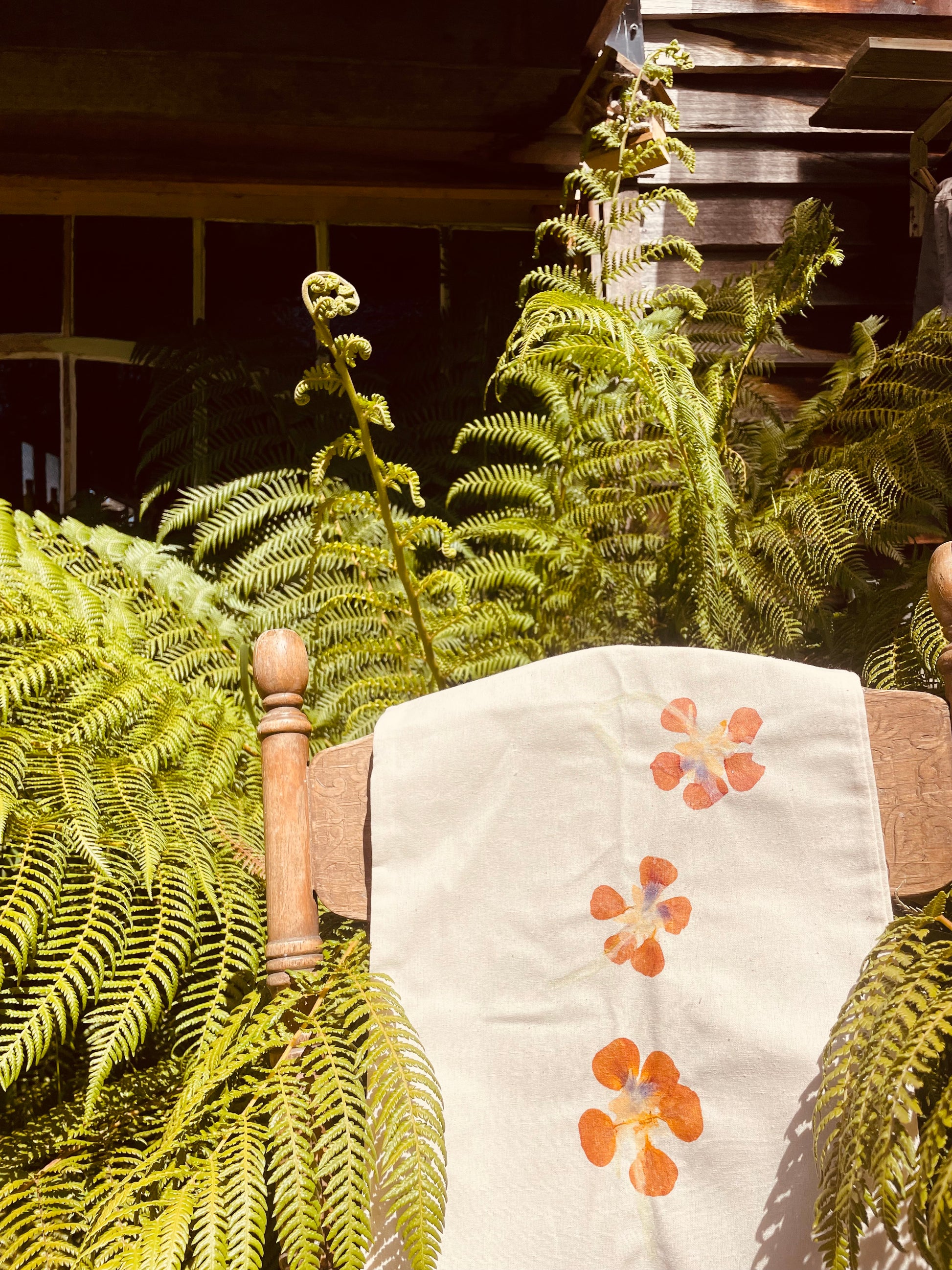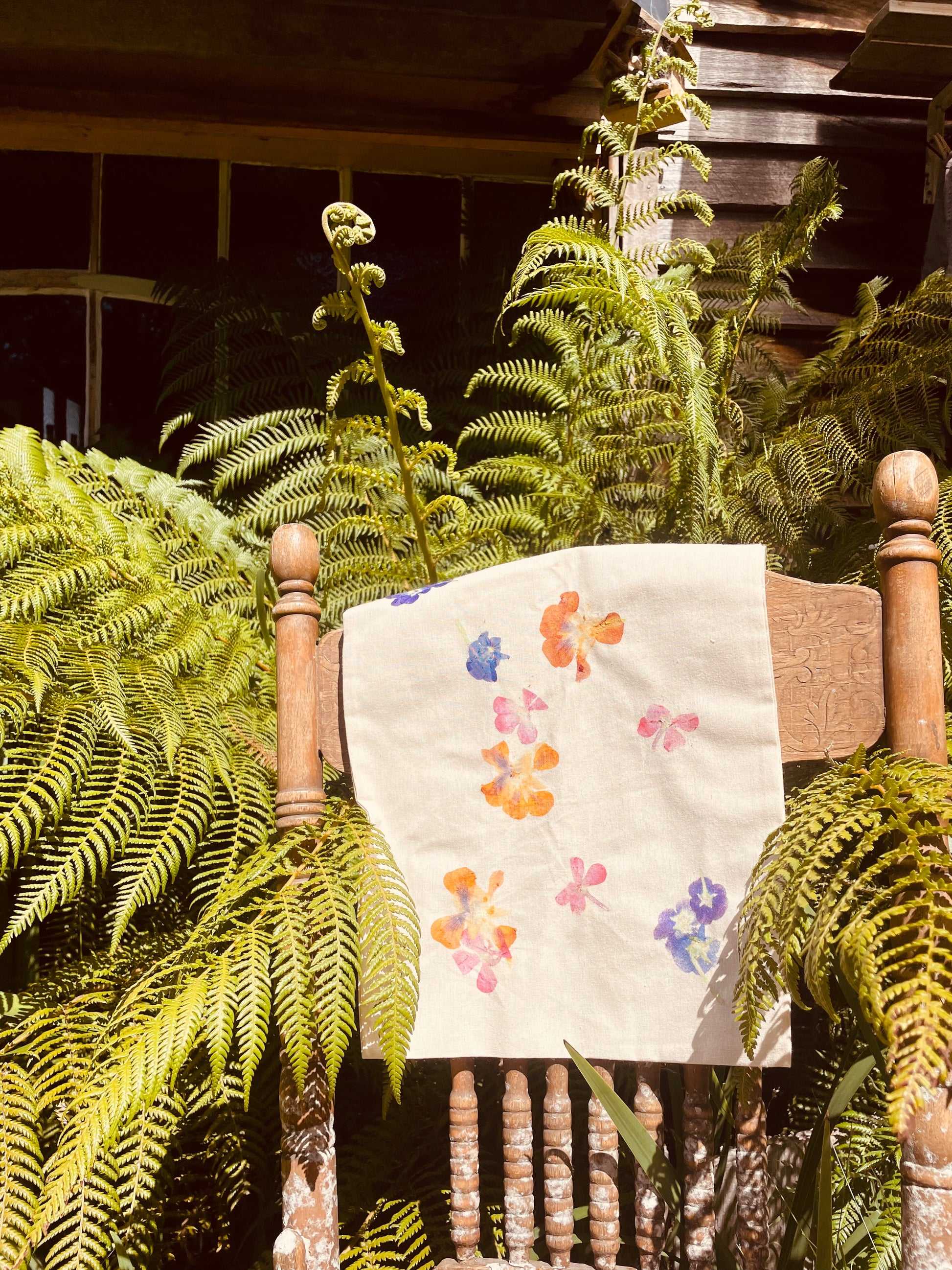 • Hand-dyed with real ferns, potato leaves, and seasonal flowers using the flower pounding technique