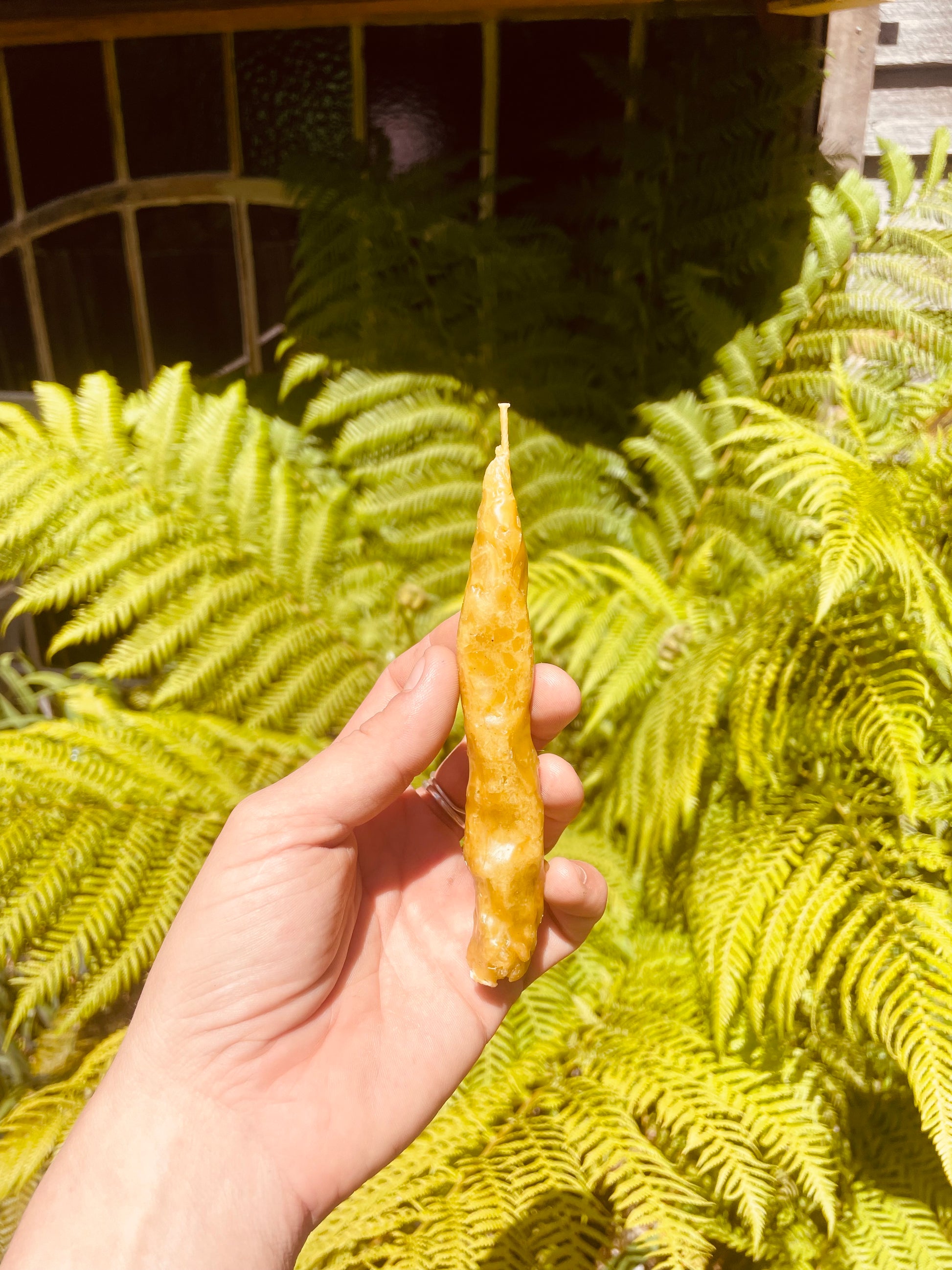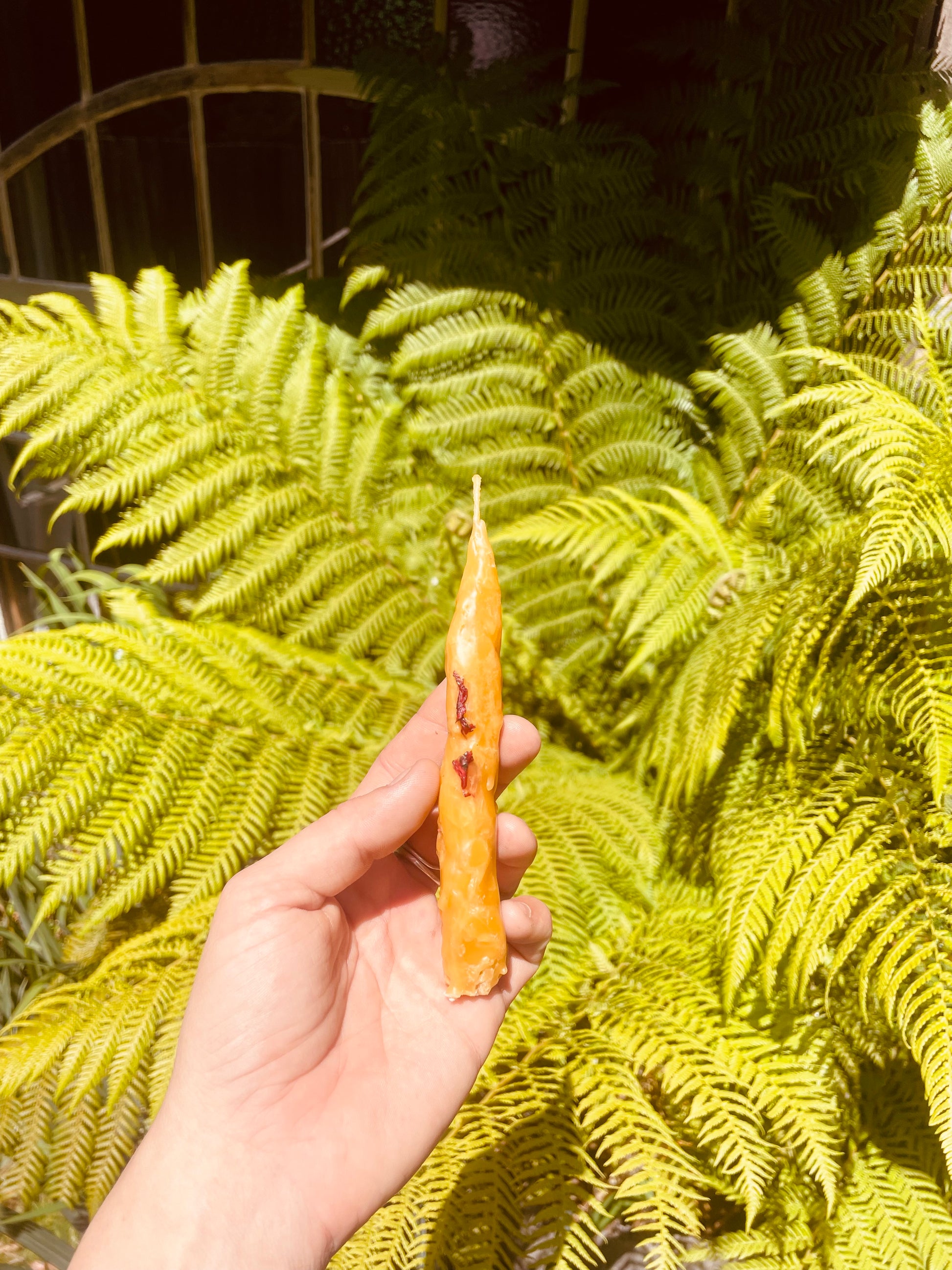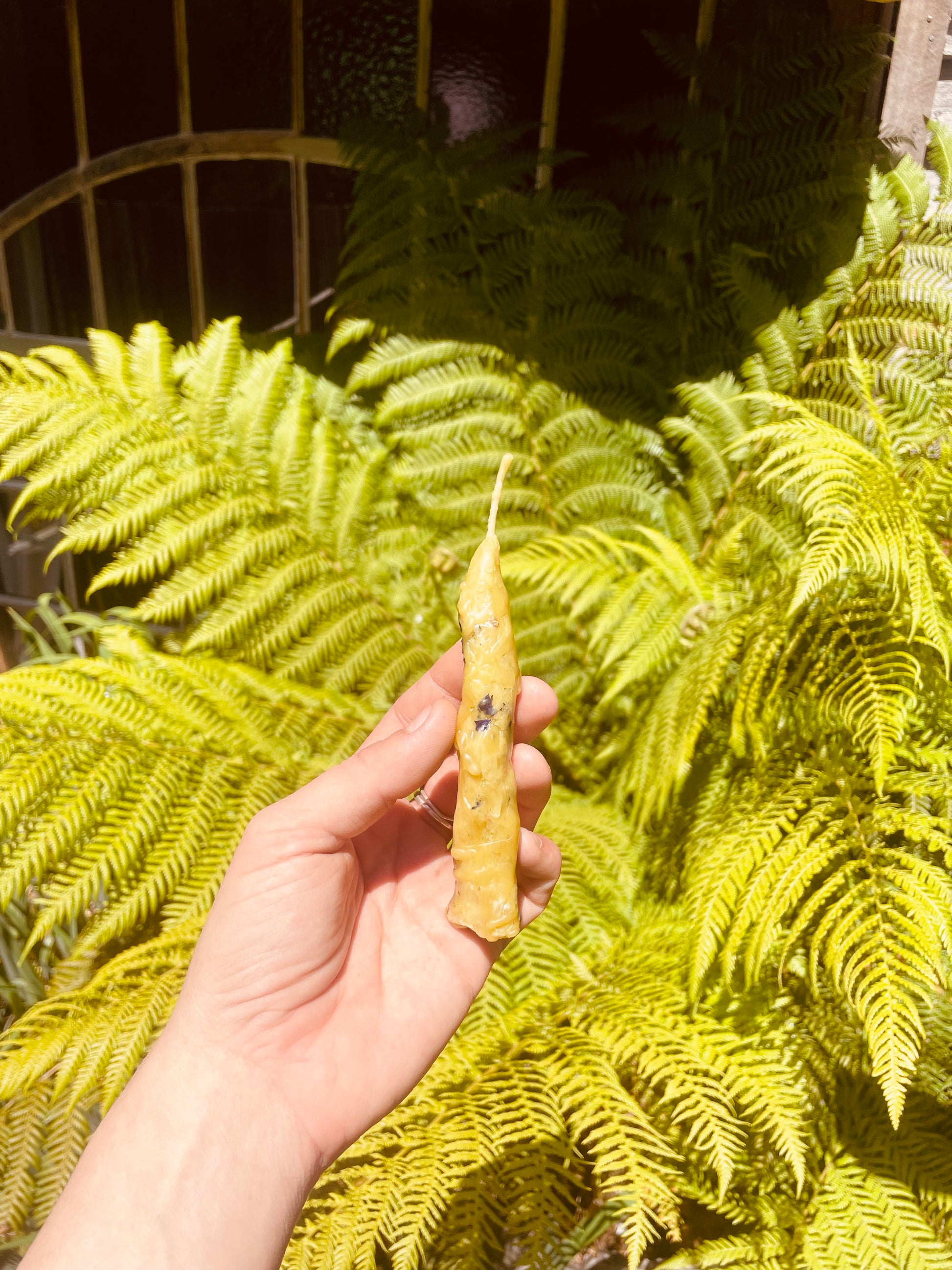 Crafted from pure beeswax, they burn in a unique way, carrying a gentle honey warmth wrapped in the herbal sweetness of Blue Tansy and the unique energy of the Mountain. Perfect for ritual, quiet reflection, or as a gift of light and wild beauty.