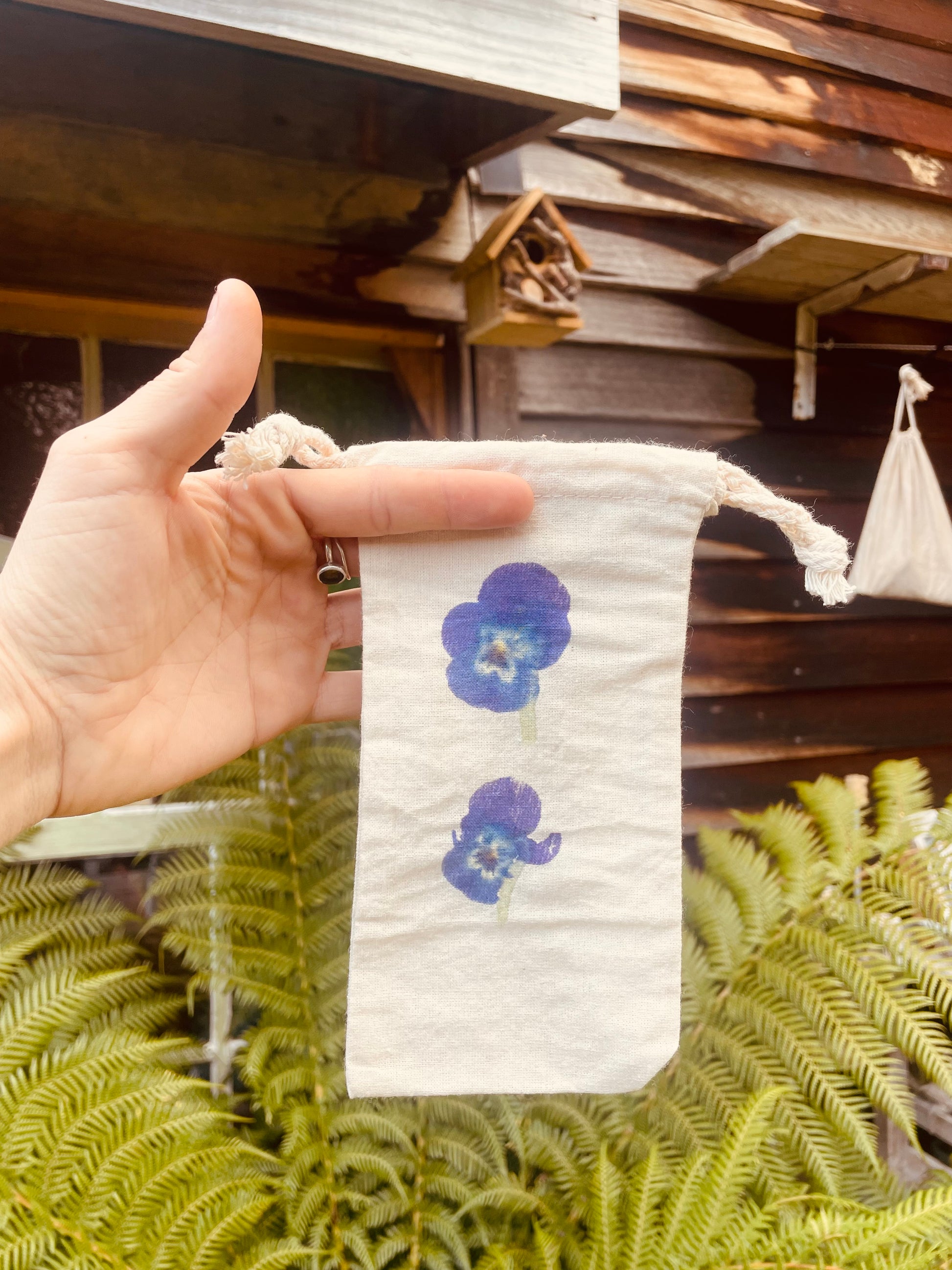 A soft shield for your everyday essentials, this hand-dyed sunglasses case is both practical and poetic. Made from natural, breathable fibres and imprinted with real leaves and flowers through the art of flower pounding, it carries the quiet imprint of the wild.